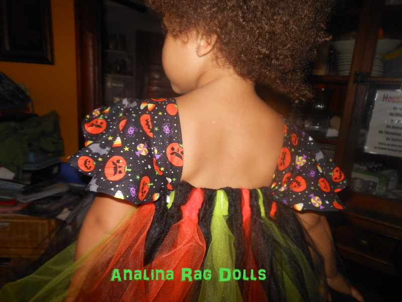 Okay this pattern (affiliate link) was disappointing to say the least, there were no pattern to make sleeves and had only measurements for waist and sleeve myself. Not all directions were included in the pattern that were on the front of the package. So I used the tulle measurements and the measurements for the top (around the chest), which is a little small (tight). I found another pattern to make sleeves and another one for a bow for the front. I made the tutu the same way I made all her others (elastic and looping the tulle around) because this pattern calls for some thing else. She likes it, so one Halloween costume done and 2 to go, Batman is next.