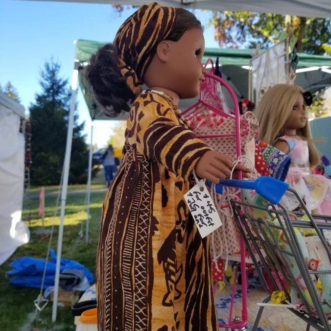 My new line of America girl dolls clothes has been super successful at the last 3 craft fairs of 2019. This let’s me play with dolls, which I loved doing as a child. One other benefit is, my daughter (10) will play too without any technology around. I hate that kids are growing up too fast, so this helps her slow down. Back to what I was saying, I sold almost all my stock at 3 craft fairs in a row. So I will be backing off my dolls (raggedy ann are still available) to focus more on this line. One more thing, my mom makes ethnic clothes with unique prints for those looking for them (pic below). Finally, she will make bigger gowns and customs that will be works of art.